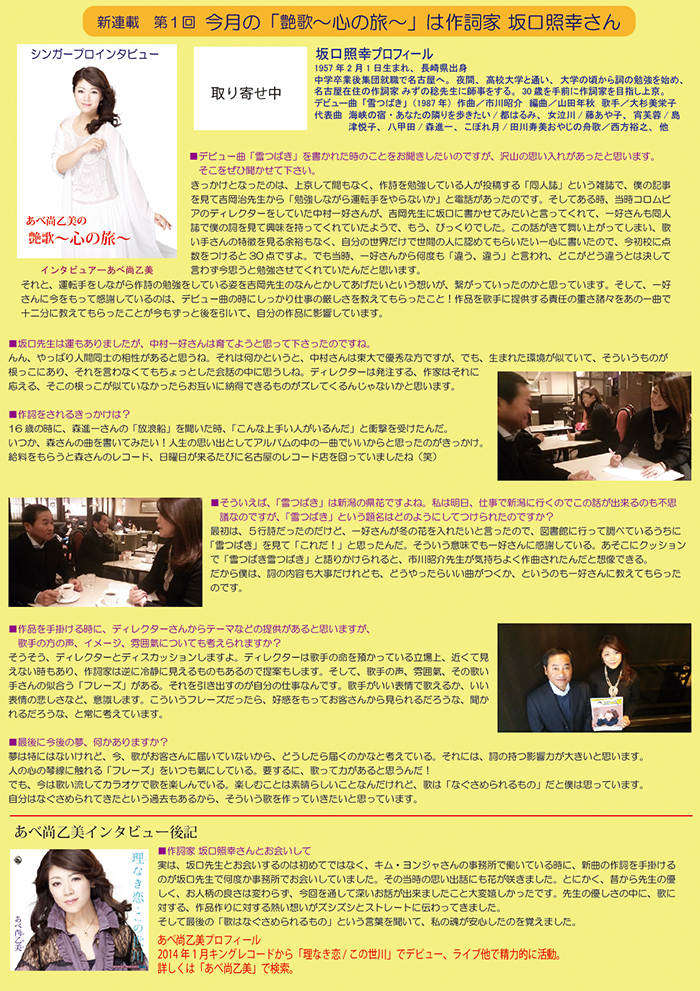 ■岡 千秋(作曲家) ■坂口照幸(作詞家) ■西つよし(作曲家)