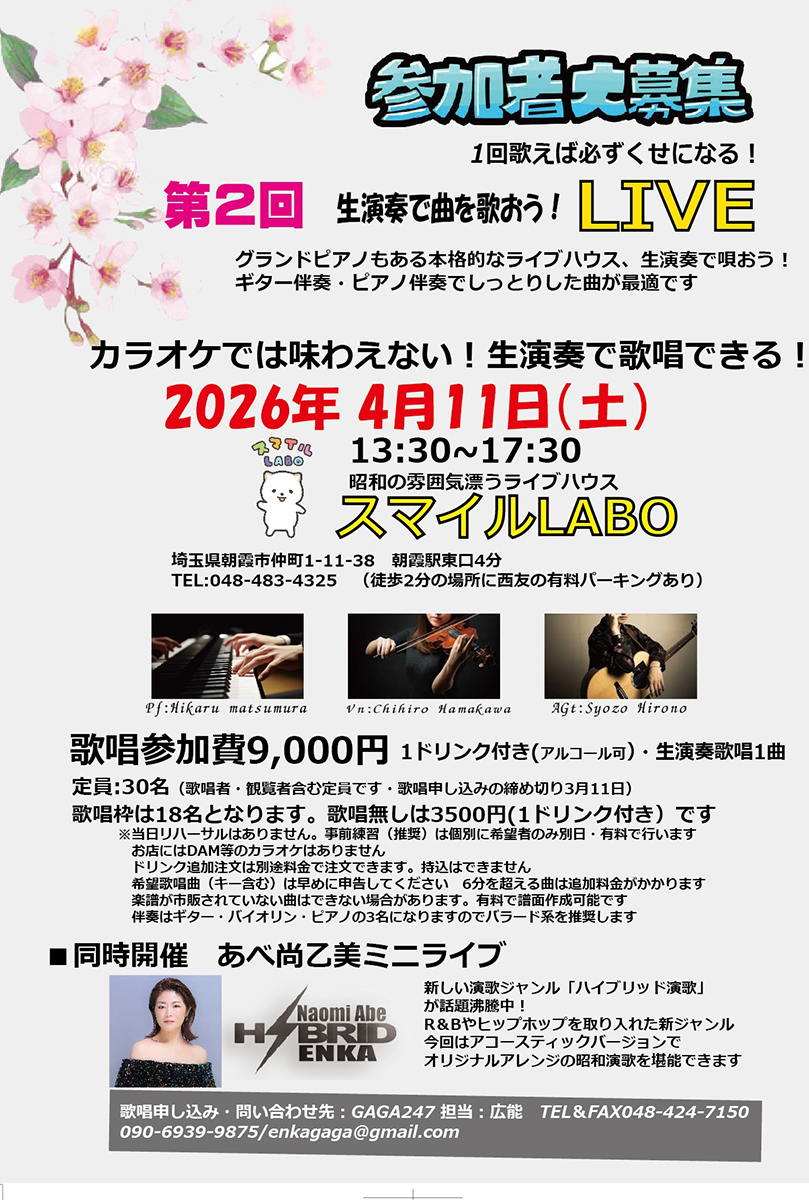 あべ尚乙美ライブのお知らせ